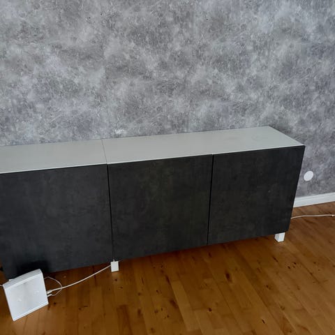 Två ben i framkant samt väggbeslag för förankring i väggen medföljer tillsammans med hyllplan.