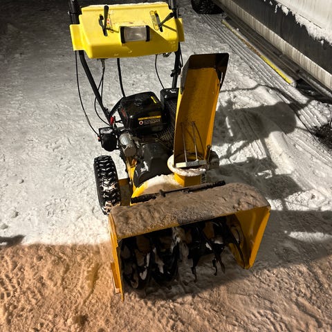 Använd för att röja snö från gångvägar, uppfarter eller mindre områden. Produkten är i befintligt skick med synliga tecken på användning och snörester.