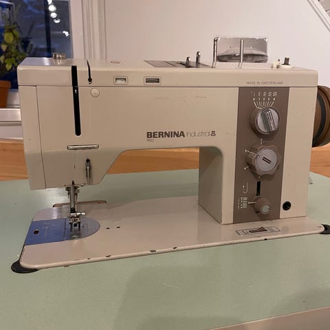 Mycket fin äldre Pfaff 2-nåls raksöm industrisymaskin i fungerande skick modell 542-720/01. Det sitter en ny Servo motor på just nu, men den medföljer ej då jag behöver ha kvar den.