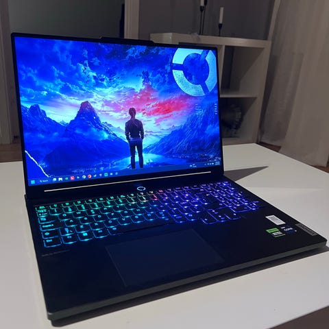 Lenovo bärbar dator i grå färg. Utrustad med bakgrundsbelyst tangentbord och NVIDIA GeForce grafik. Innehåller Intel Core-processor. Passar för allmän användning och arbete.