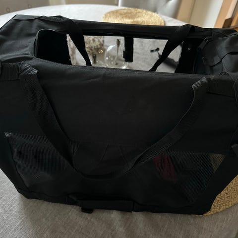 Svart bärbar väska för djur.väskan har handtag och en avtagbar axelrem. Väskan är använd EN gång. Säljs för halva priset och det är prutat och klart. Nypris 500kr. Endast avhämtning i Malmö.