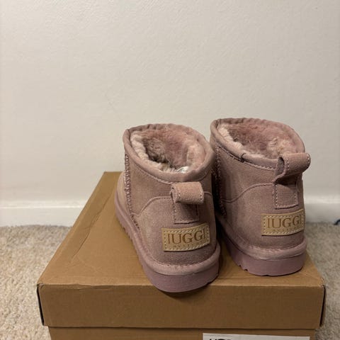 UGG barnstövlar i storlek 36 för flicka. Stövlarna är tillverkade i mocka med en foder av mjukt och varmt material som ger isolering och komfort. Designade för att hålla fötterna varma under kalla förhållanden. Hela men har tyvärr blivit lite vattenskadade i mockan på tå och där bak. Går kanske att "putsa till" med mockaborste.
