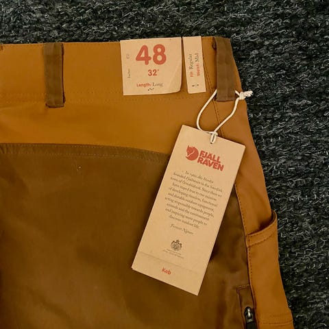 Säljer ett par knappt använda Fjällräven Keb-byxor. Storlek 48 regular med ventilationsdragkedjor på benen.