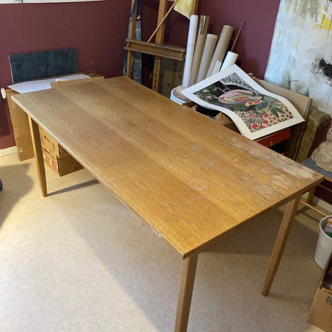 Der finns lite slitage på skrivbordets ovansida men inget som stört oss.