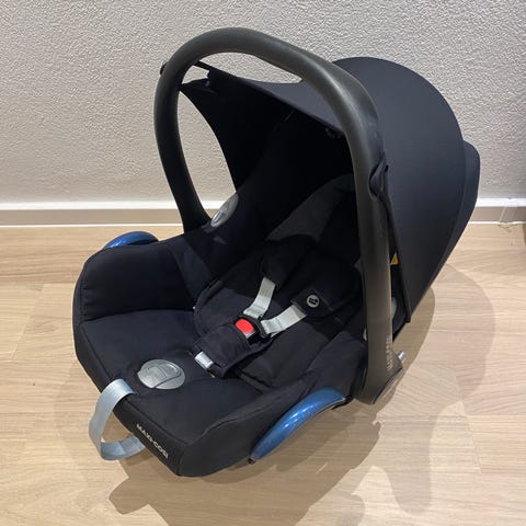 CabrioFix i-Size babyskydd från Maxi-Cosi med en medföljande bas. Det har ett justerbart huvudstöd och ett praktiskt solskydd. Babyskyddet har ett avtagbart spädbarnsinlägg för användning med spädbarn yngre än fyra månader. CabrioFix är även utrustad med ett integrerat sidoskyddssystem som ger det bästa skyddet för ditt barn vid eventuell sidokollision. Babyskyddet har en lättviktsdesign och fungerar tillsammans med de flesta travelsystem på marknaden.