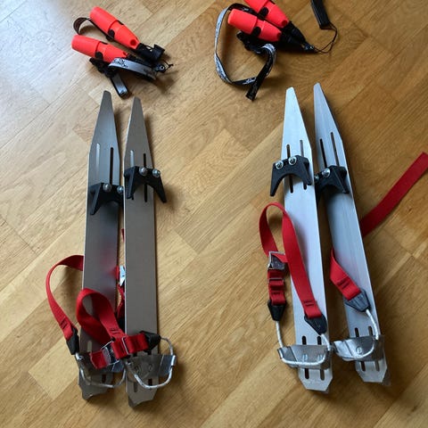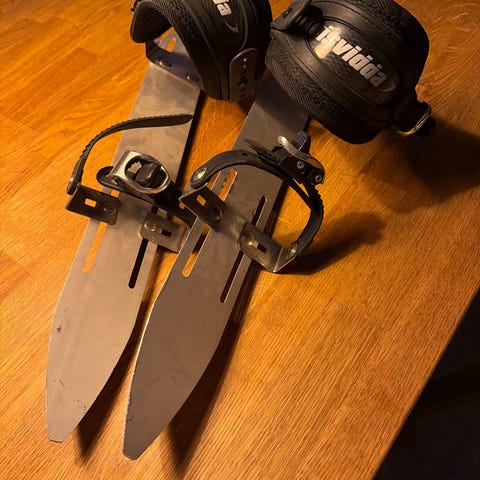 Långfärdsskridskor att spänna på pjäxor/ kängor. Längd 45 cm som passar damstorlek.