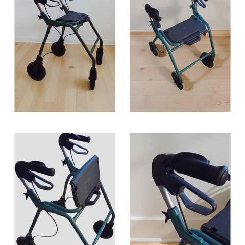 Trust Let's Go Out rollator i svart färg. Rollatorn har fyra hjul och en praktisk sittplats med ryggstöd. Utrustad med en förvaringsväska under sitsen. Lämplig för inomhus- och utomhusbruk för personer som behöver stöd vid gång. Skickas inte. Hämtas i Östersund.