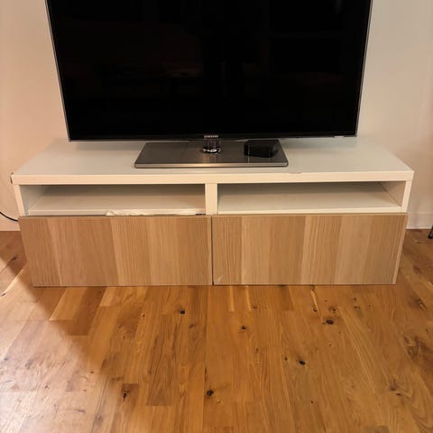 IKEA TV-bänk med två lådor och två öppna fack, vit