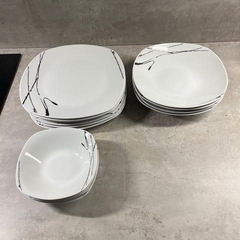 9 stycken IKEA tallrik tillverkad i vitt porslin. Tallriken har en dekorativ kant och är lämplig för vardagligt bruk i köket. Diameter 27 cm. 45 kr totalt för alla nio.