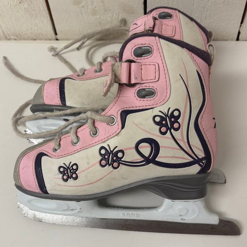 Skridskor med hårt skal och slalomspännen i storlek 32, perfekta när man ska lära sig att åka skridskor. Skridskorna är svarta och grå med två spännen för justerbar passform och stöd. Samtliga spännen fungerar.