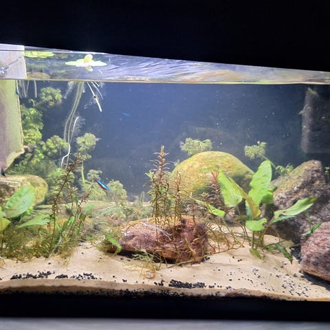 Säljer 15 liters akvarium. 8kantigt. Passar perfekt till räkor. Komplett med lock, lampa, syrepump, reningspump och håv.