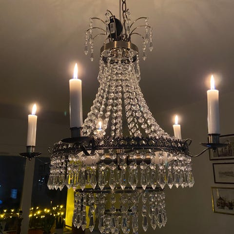 Kristallkrona med fem ljuskällor.