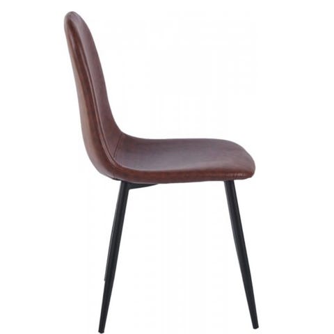Stol med sits i brunt läder och underrede i svart metall. Sitsen har detaljer i form av sömmar runt kanten. Stolens design kombinerar material för en robust och stilren konstruktion.