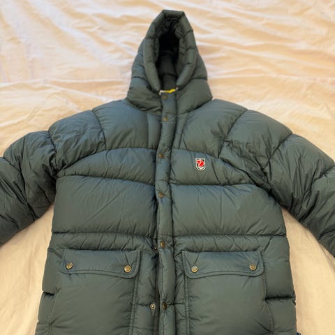 Fjällräven Expedition Lätt Hoodie i storlek S för herr. Jackan är gul (nyansen heter Dandelion hos Fjällräven) och har dunfyllning. Sparsamt använd och skicket är därför mycket gott, som ny i princip, men med en anmärkning. Det finns två mindre fläckar, se bilder. En är pytteliten och syns knappt. Den andra också liten men mer synlig. Jag har inte fått bort dem men kanske går det. Jag tycker inte det stör men priset är satt därefter.
