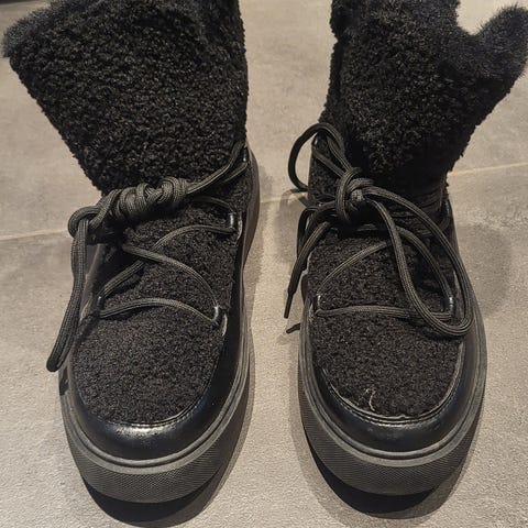 Linear vinterskor i storlek 37, rosa färg. Skorna är fodrade för att ge värme och komfort under kalla förhållanden. Materialet är robust och lämpligt för vinterbruk, med en slitstark sula för bra grepp.