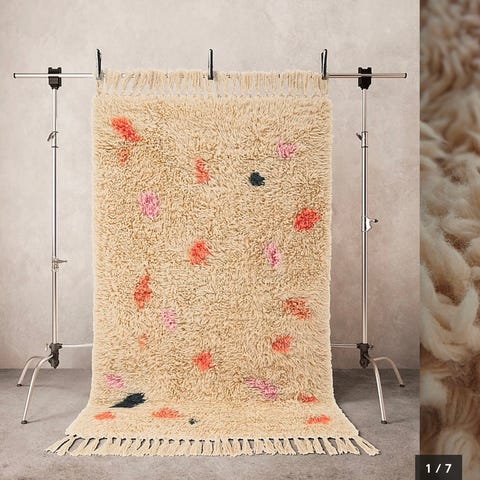 Fin ullmattafrån Jotex i olika färger och textur. Fint skick bortsett från en fläck samt lite stearin (se bilder), vilket enkelt går bort. Efter tvätt blir skicket mycket bra! Mattan håller hög kvalitet.