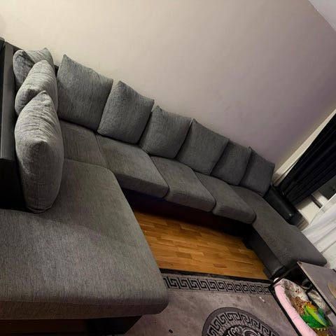 Nypris: Soffa ca 18 000 kr + fotpall ca 4 500 kr. Totalt nyvärde: ca 22 500 kr.