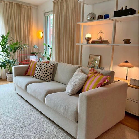 Stor soffa säljes. Vimle finns fortfarande på IKEA men just denna rödrutiga färgen har utgått. För mått se bild. Visst slitage finns som syns som ljusare partier, men inga hål eller nedsuttna kuddar eller dynor. Barn, djur och rökfritt hem.