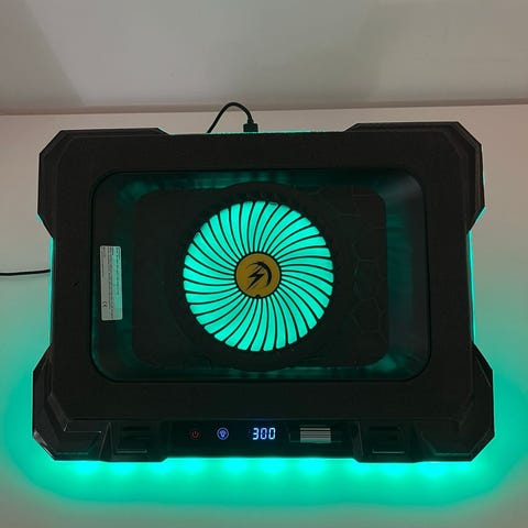 En fin fungerande röd kylplatta med USB A kontakt. För laptop 15,6 tum eller mindre. Av hård plast. Undertill tygaktigt. Kylplatta längd 27 cm, bredd 36 cm, höjd 2 cm. Möter på offentlig plats i centrala Gbg. Vikt 750 gram. Laptopkylare, fläktkylare, cooling pad, kylmatta, laptop cooler, kylare laptop, notepad cooler.
