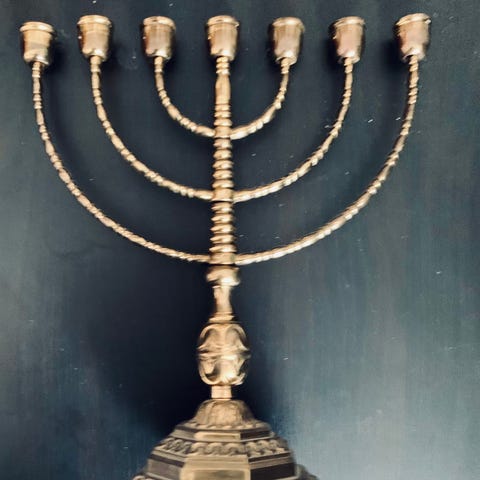 Sökord: menora, ljusstake, chanukka, guldpläterad, silverpläterad, design, inredning