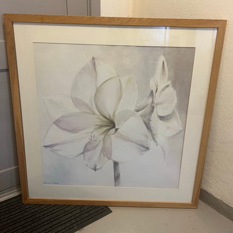 IKEA ERIKSLUND tavla med tre bilder i en vit ram. Passar för väggdekoration.