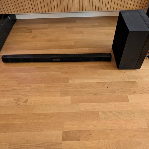 Subwoofern kopplas trådlöst till soundbaren. Kan kopplas till TVn med HDMI, optiskt, mm
