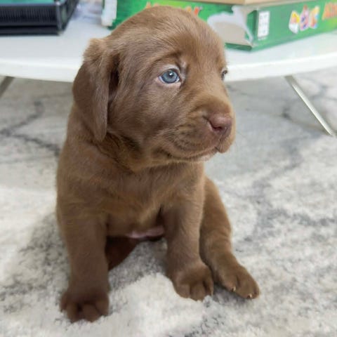 Jag är en brun labrador tik valp uppväxt i hemmiljö med allt vad det innebär med ljud o buller .