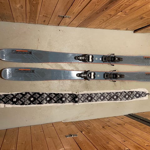 Skidor i bra skick. Monterade för en sullängd på 294mm (Storlek 25,5). Bindning Marker Duke PT 11 med topptursmöjlighet. Stighudar Kohla skurna efter skidan medföljer.
