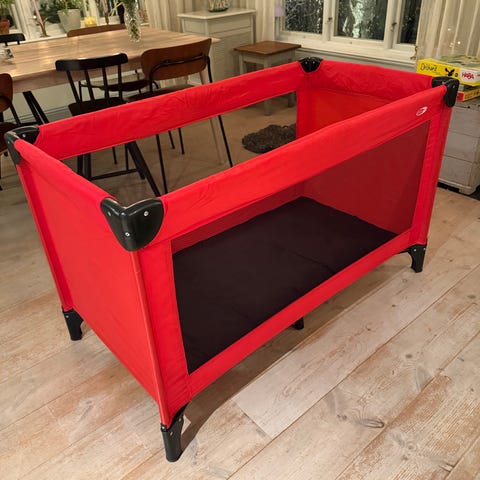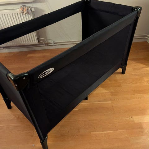 Carena Resesängar barnmöbel i svart färg. Praktisk resesäng för barn med bärbar design och nätväggar för ventilation. Lämplig för barn och enkel att fälla ihop för transport och förvaring. Aldrig använd.