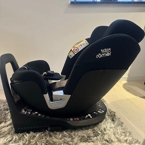 Stolen kan tiltas i flera lägen och vridas 360 grader med fasta lägen bakåtvänd eller framåtvänd. Isofix-fästen, kan inte fästas med bälte.