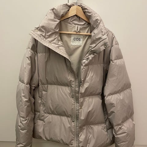 COS dunjacka för dam i marinblå färg. Jackan har en lång modell med huva och dragkedja framtill. Designad för att ge värme och skydd vid kallt väder.