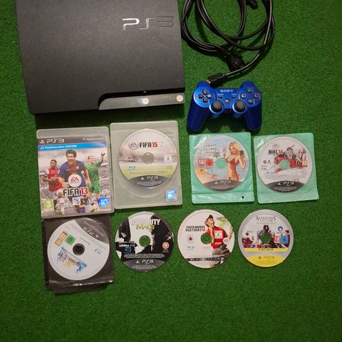 🎮 PlayStation 3 Slim + 5 spel + en handkontroll, HDMI-kabel. Mycket gott skick.