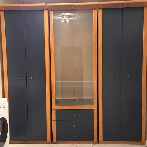Gratis mot avhämtning. Mått ca 211x60x60. Jag har monterat bort dörren som har en spegel på utsidan. Den är målad ljusgrå på ena sidan. Finns att hämta i hammarby sjöstad.