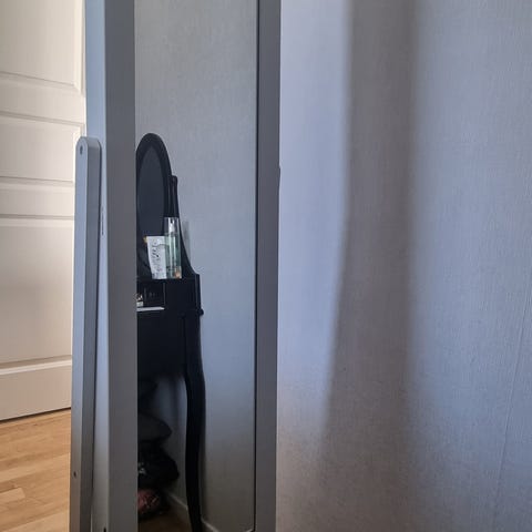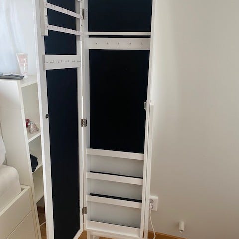 Smyckesskåp mrd spegel som står på golvet