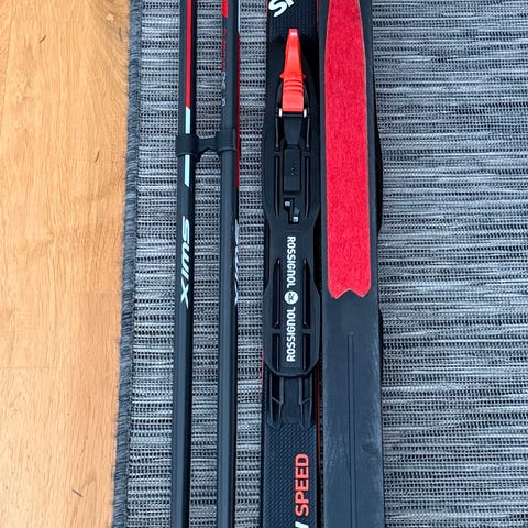 Skinskidor Rossignal R Speed Skin 140 cm med ställbar bindning, fint skick och nyvallade