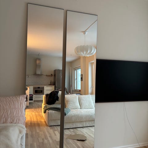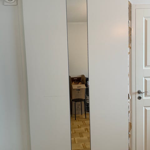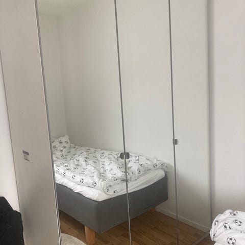 Säljer två IKEA VIKEDAL spegeldörrar som passar IKEAs PAX-garderober. Speglarna är hela och dörrarna säljs i befintligt skick. Passar utmärkt i sovrum eller hall och ger både funktion och spegel i ett med sin enkla och stilrena design.