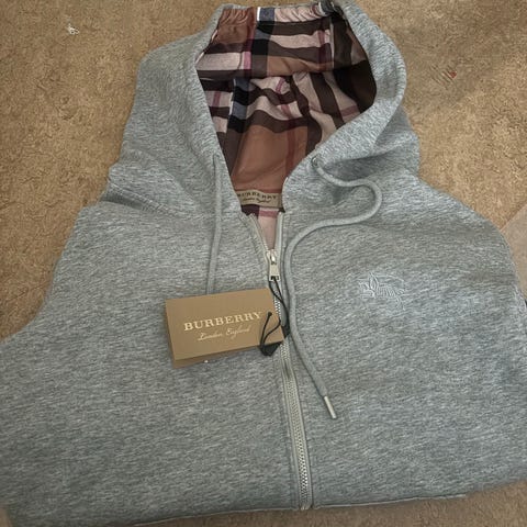 #Burberry #BurberryZipHoodie #Designerplagg #LuxuryWear #StreetwearStyle #GråHoodie #PremiumFashion #Herrkläder #NyMedTaggar