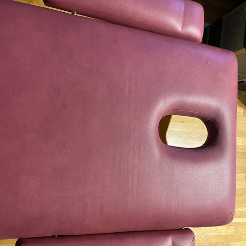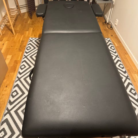 Massagebänk med svart konstläder och justerbara armstöd