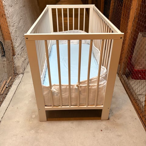Spjälsäng med madrass