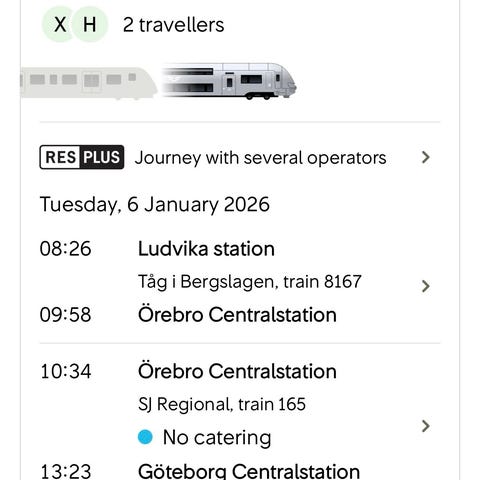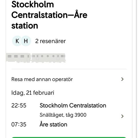 Tågbiljett tur och retur Göteborg-Stockholm
