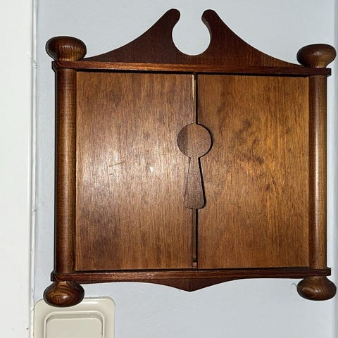 Plattan med rören för nyckelhållaren kan fästas med två skruv eller dubbelhäftande tejp.