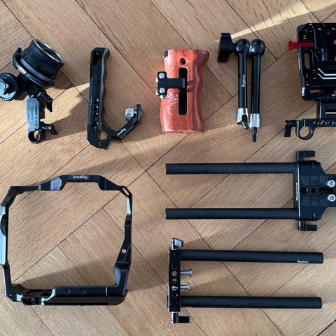 Alla originaltillbehör finns med, förutom en extra motorkabel samt remmen till FIZ unit. Sex batterier ingår. Extra tillbehör följer med i form av Tiltas monitor bracket samt ett 28mm motor gear (Krävs t.ex. för optik där gears rör på sig när skärpan flyttas).