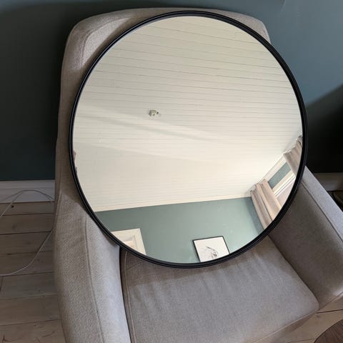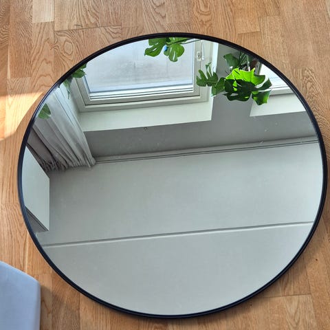 Säljer en elegant oval spegel med svart metallram i stilren, modern design. Passar perfekt i hall, badrum, sovrum eller vardagsrum. Vi hade den i vårt badrum ovanför handfatet!