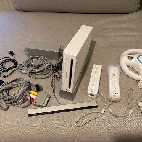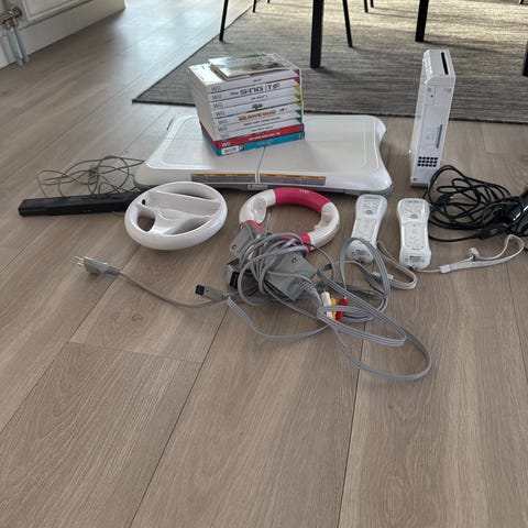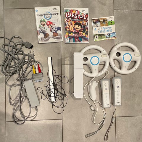 Nintendo Wii – komplett paket med 9 spel, 2 kontroller & 2 rattar