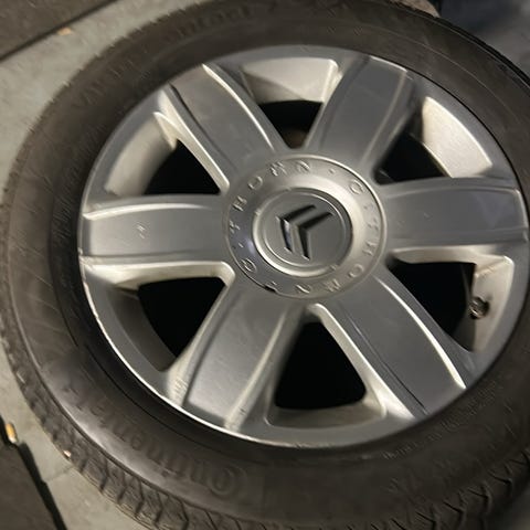 Fälgarna har skrapmärken. Däcken har kört en säsong