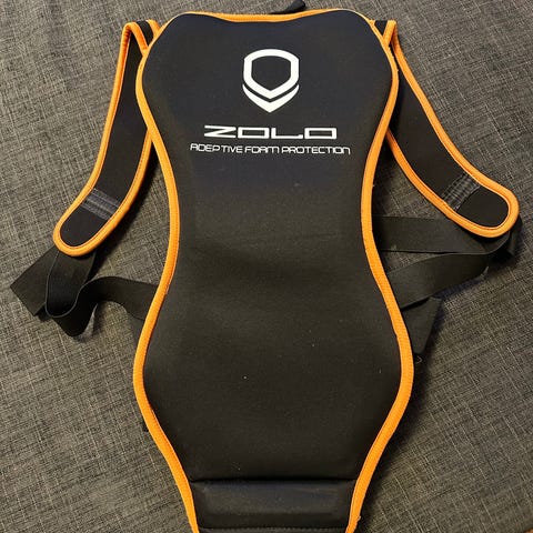 Ryggskydd från Biltema strl small med dragkedja för optimal passform.