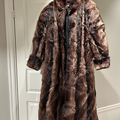 ”Renoverad” päls i brunt i lamm och rävpälskrage.