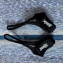 Bärrem för skidor, med en skistrap i varje ände för fäste runt skidorna samt justerbar axelrem för smidig transport.