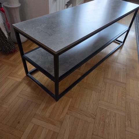Säljer vit tv-bänk i högglans (200x45,5x55 cm) med tre utdragbara lådor med mörkt glas upptill. Lådorna funderar som det ska, trycks inåt för att öppnas och har hål baktill för sladdar, perfekt för elektroniken. Tv-bänken är ren och i fint skick, inköpt från Trademax.