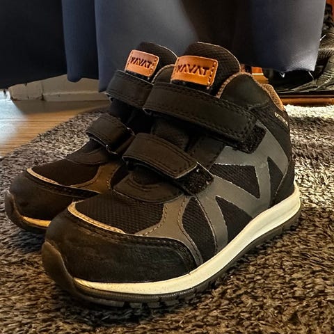 Svarta Bagheera höst/vårskor, vattenavstötande, lätta att ta på/av och sitter bra på foten. Storlek 24, lite nötta vid tån, se bilden.